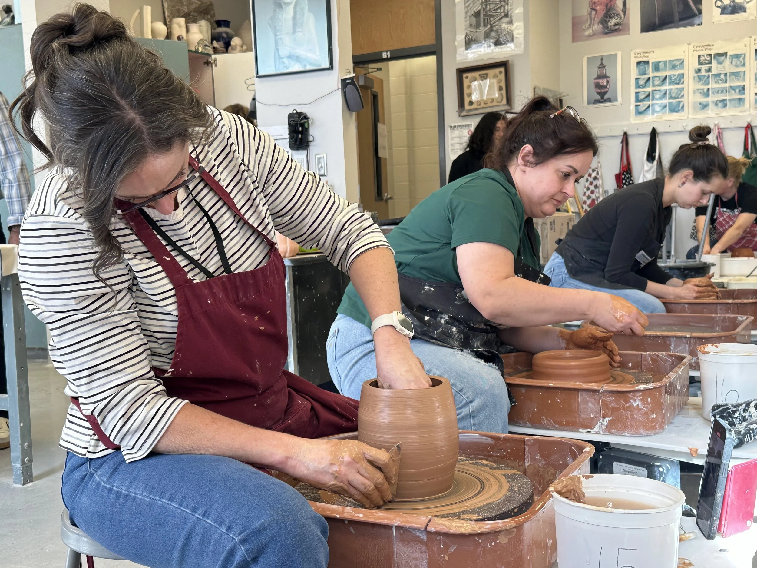 Participants will explore techniques for throwing a pumpkin form on the wheel, adding surface texture, and finishing your piece with a functional lid and sculpted stem.